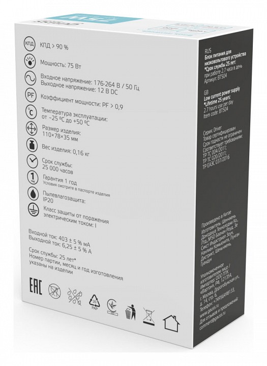 | Размер упаковки, мм | 114x80x40 | |