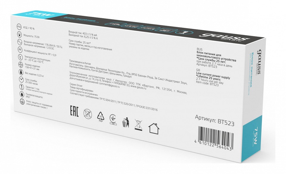 | Артикул | GA_BT523 | |