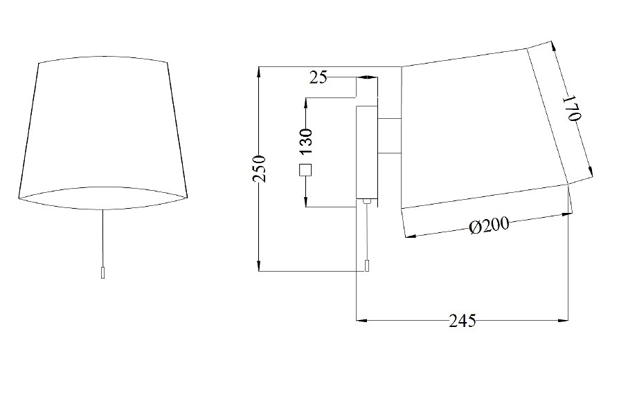 светильник предназначен для использования со скрытой проводкой, размер плафона 150/200x170 мм |