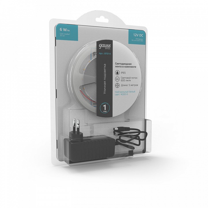 гибкая влагостойкая светодиодная лента 5 м в блистере:, герметичная силиконовая оболочка, предназначена для использования на улице, клейкое основание с защитной пленкой, цвет основания: белый, тип светодиодов: SMD2835, размер светодиодов: 2.8х3.5 мм, модуль резки: 50 мм, наименьший радиус изгиба: 25мм при выборе блока питания следует учитывать общую мощность ленты или нескольких лент, соединенных вместе, с добавлением 10-20 % запаса по мощности |