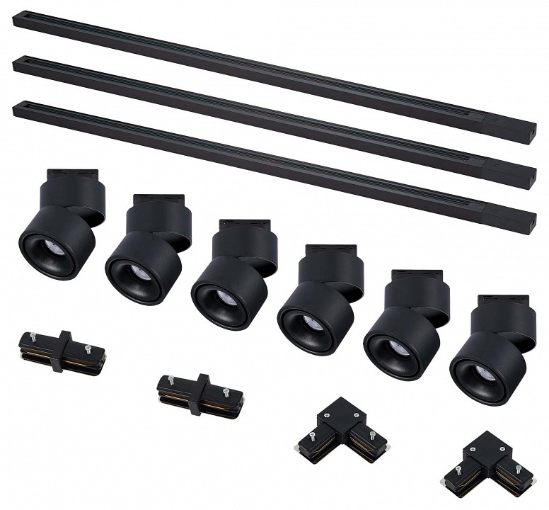 3 шинопровода, 6 светильников, коннекторы |