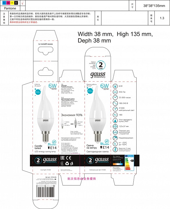 | Размер упаковки, мм |