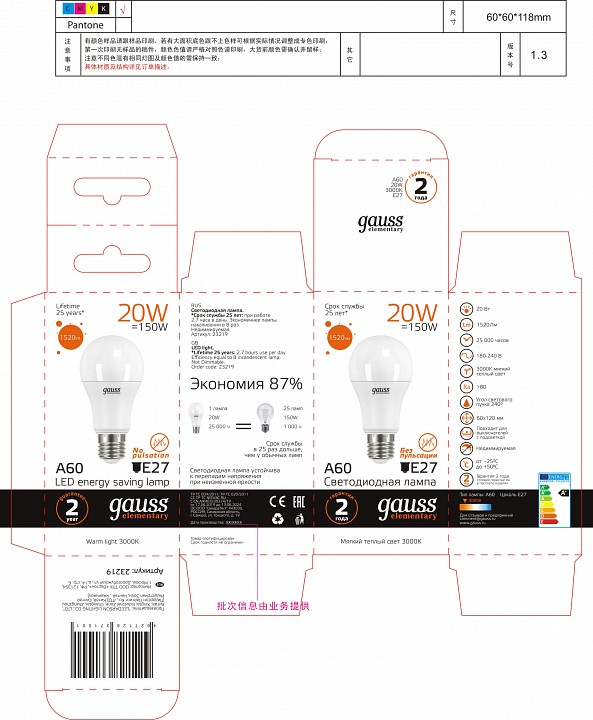 | Светоотдача, лм/Вт |