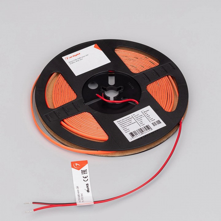 узкая светодиодная лента COB:, клейкое основание с защитной пленкой, при выборе блока питания следует учитывать общую мощность ленты или нескольких лент, соединенных вместе, с добавлением 10-20 % запаса по мощности |