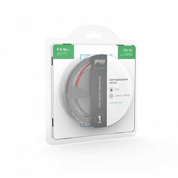 гибкая светодиодная лента 3 м в блистере:, клейкое основание с защитной пленкой, цвет основания: белый, модуль резки: 50 мм, наименьший радиус изгиба: 25 мм при выборе блока питания следует учитывать общую мощность ленты или нескольких лент, соединенных вместе, с добавлением 10-20 % запаса по мощности |