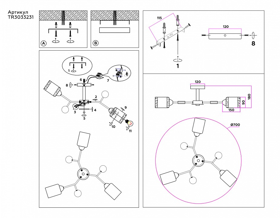 | Количество плафонов |