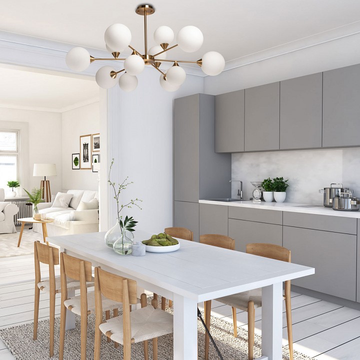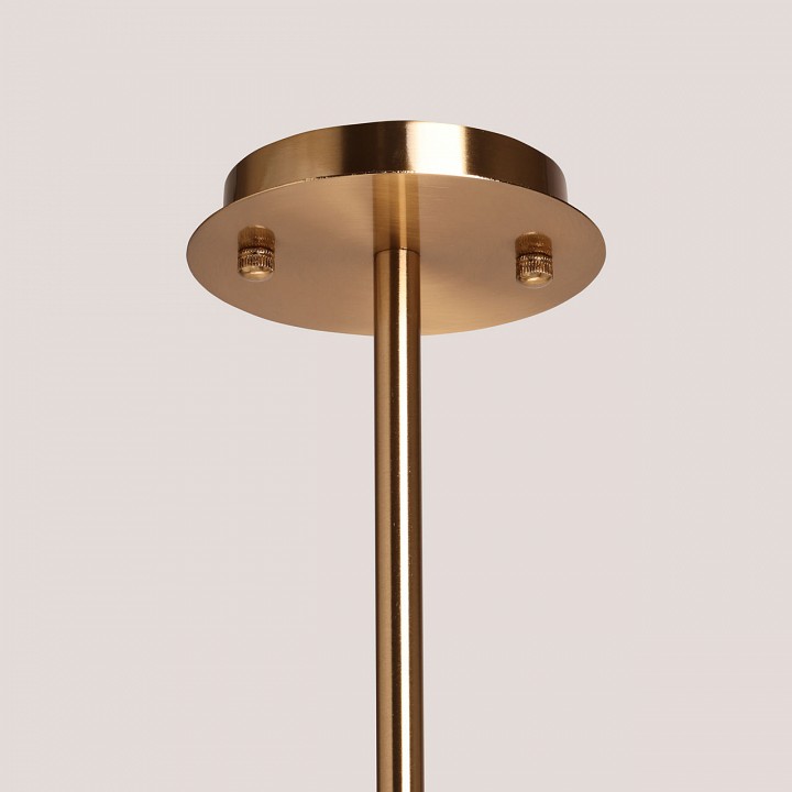 Металлическое основание подвесной люстры гальванизировано в цвет латуни. Стеклянные плафоны выдуваются в форму вручную и матируются. |
