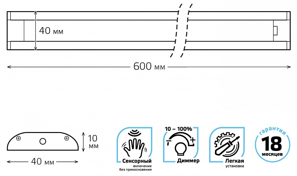 плавное диммирование: 10%-100%, максимальная длина модульной системы не должна превышать 2 метра или совокупность мощность системы 36 Вт |