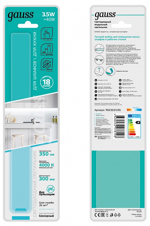 три режима включения: 20%, 50%, 100%, максимальная длина модульной системы не должна превышать 2 метра или совокупность мощность системы 36 Вт |