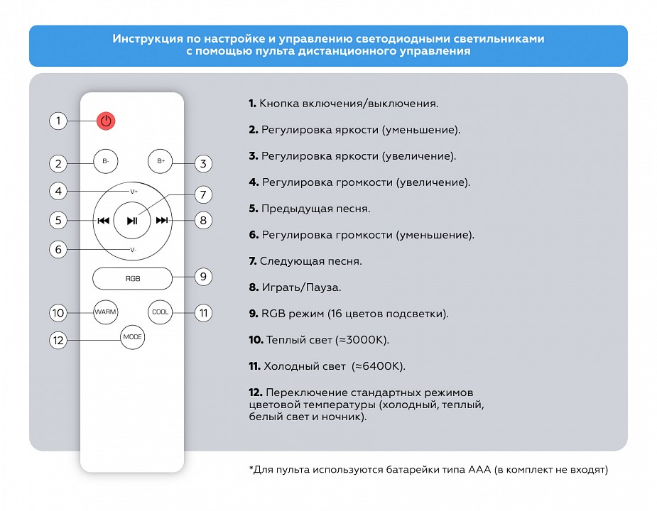 | Наличие выключателя, диммера или пульта ДУ |
