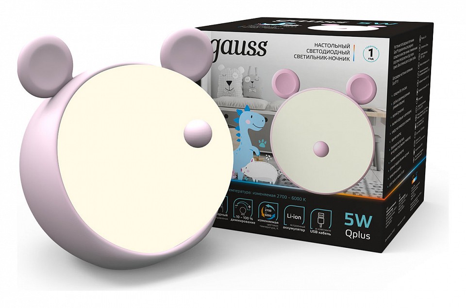 Невероятно удобный и нежный светильник от Gauss прекрасно выполнит роль ночника в детской комнате. Несколько моделей из всей линейки представлены с функцией диммирования, что позволит регулировать и изменять цветовую температуру освещения. Удивительный дизайн в виде различных маленьких животных прекрасно дополнит детскую комнату вашего малыша и создаст атмосферу уюта, тепла и спокойствия, что является важным для родителей. Светильник выполнен из мягкого и безопасного материала. Ночники от Gauss оснащены Li-ion аккумулятором, что позволит их с легкостью переносить и использовать в удобном для ребенка месте в течение длительного времени. Зарядка аккумулятора осуществляется от шнура с USB разъемом идущего в комплекте. Мягкий и приятный на ощупь ночник станет самой любимой игрушкой вашего малыша, а также незаменим помощником дома. |
