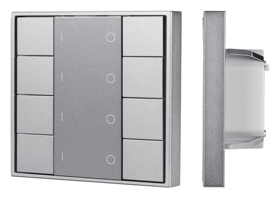 | Дополнительные параметры | встраиваемая кнопочная серая металлическая панель для работы по протоколу DALI, функция диммирования 4 группы / широковещательная, установка номера группы выполняется переключателями на корпусе, 8 кнопок, 3 функции (ВКЛ / ВЫКЛ / ДИММИРОВАНИЕ), питание от шины DALI | |