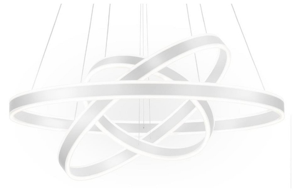 светильник на тросах в форме каскада из трёх колец, высоту и угол наклона каждого из которых можно легко изменить |