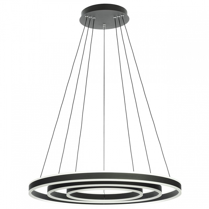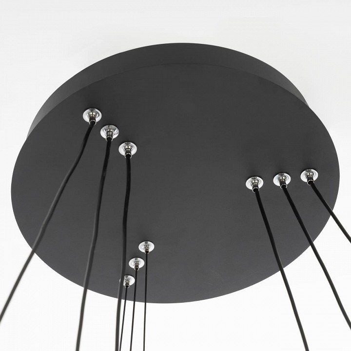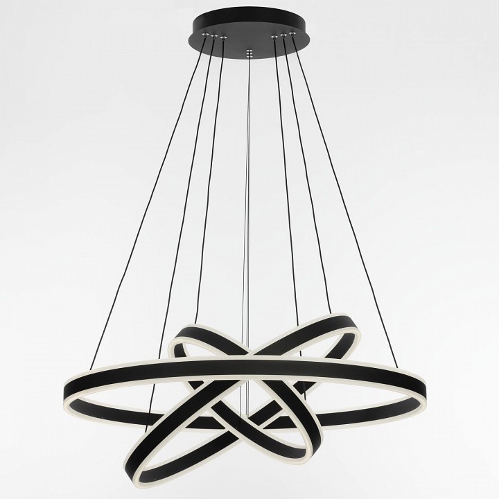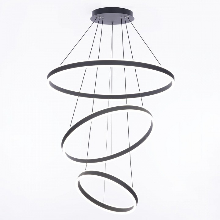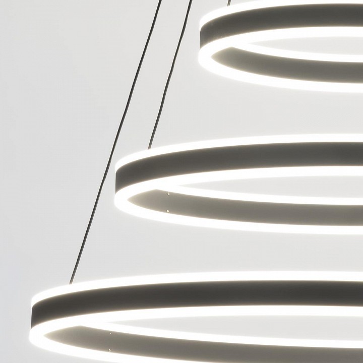 светильник на тросах в форме каскада из трёх колец, высоту и угол наклона каждого из которых можно легко изменить |