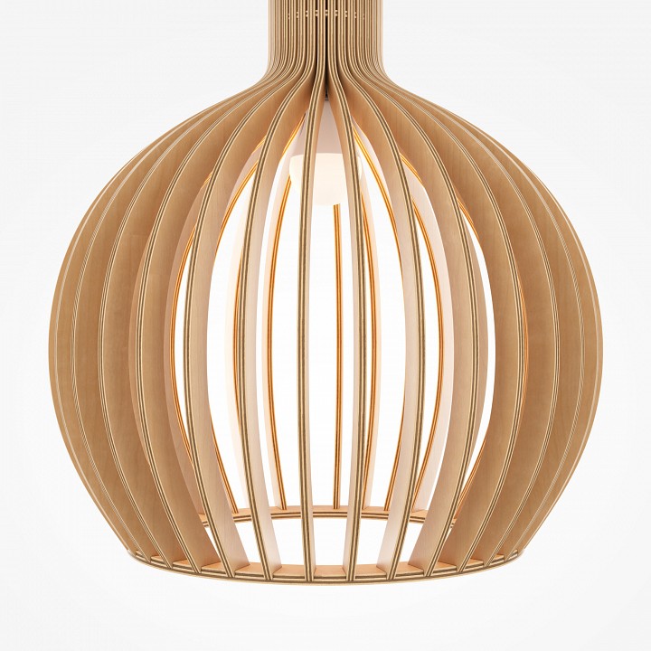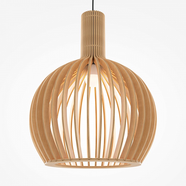 Абажур – 5-ти слойная фанера бежевого оттенка, покрытая специальным лаком. Тканевый черный провод. Регулируемая высота. Простые лаконичные форма, природные материалы. Цоколь E27. |
