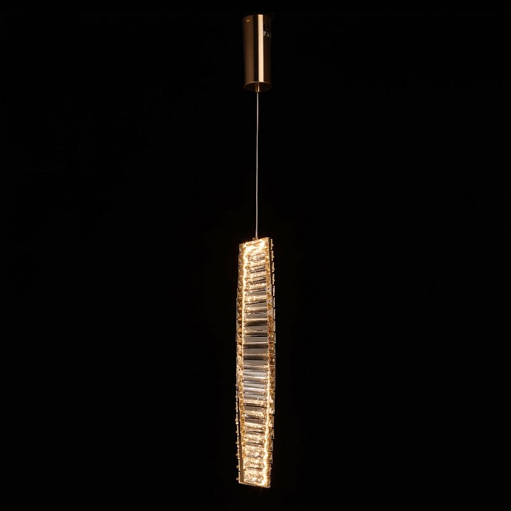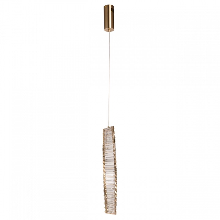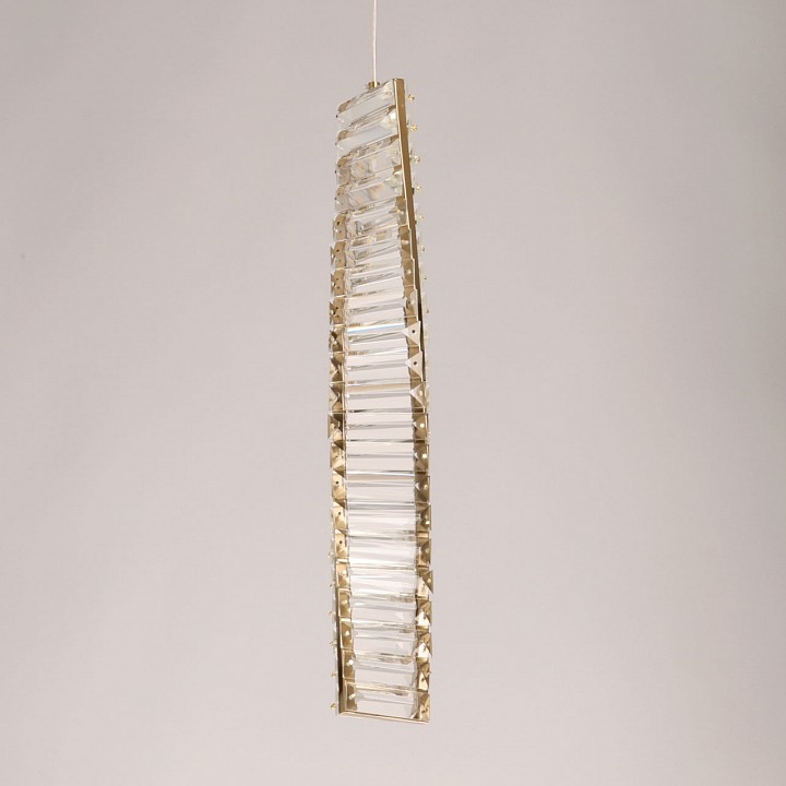 Металлическое основание подвесной люстры гальванизировано в цвет латуни. Люстра декорирована прозрачным хрусталем. |