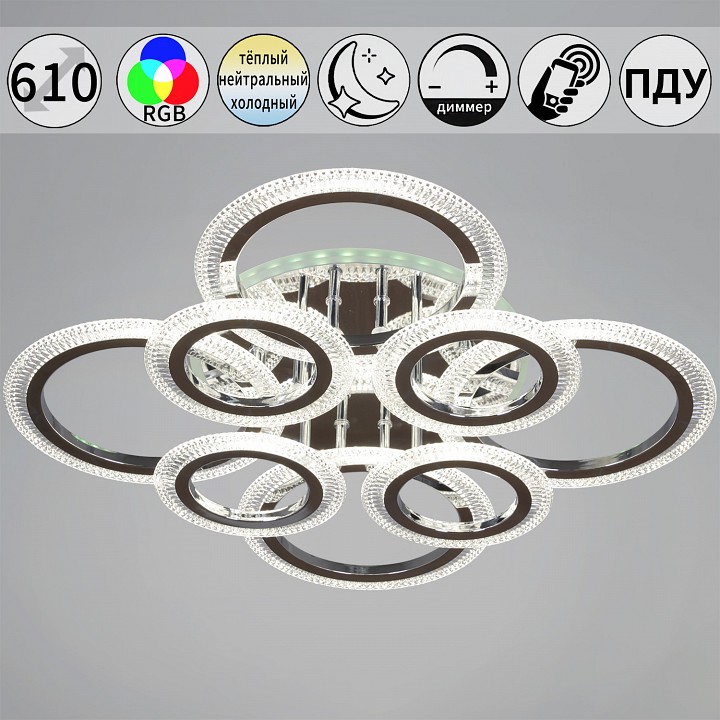 Управление с телефона, светильник декорирован RGB светодиодами. |