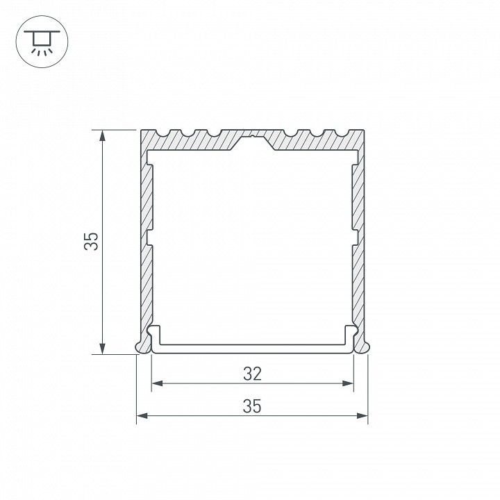 профиль накладной анодированый для лент шириной до 32 мм, подходит рассеиватель ARH-POWER-W35(F)-2000, заглушки (отдельно) |