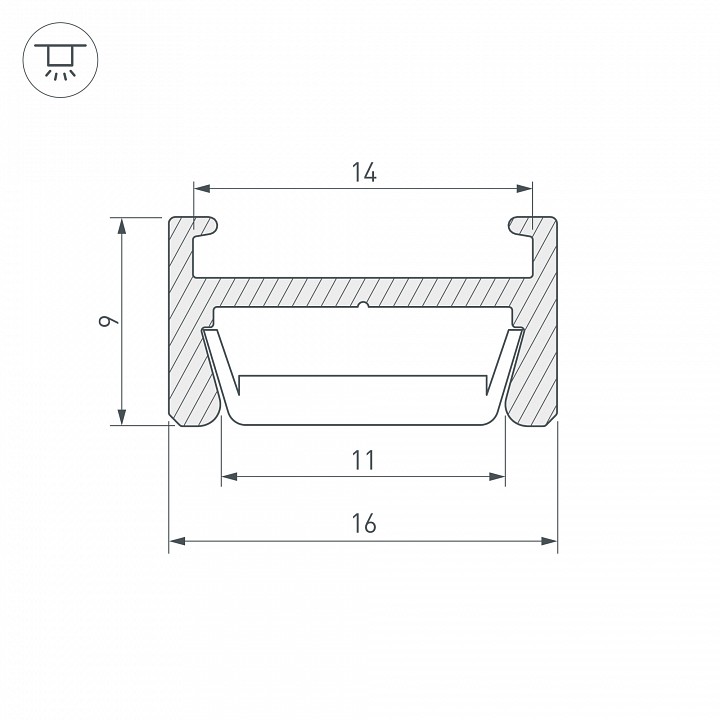 Алюминиевый анодированный профиль для светодиодных лент и линеек, со скрытым монтажом на скобы. Ширина площадки для ленты 11 мм. Экраны, заглушки и другие аксессуары приобретаются отдельно. КПД профиля (cветовой): 90 % Рассеиваемая тепловая мощность на 1м: 8.1-10.0 Ширина площадки: 10.1-12.0 Ширина световой линии: 10.1-12.0 Ширина: 14.1-16.0 Рассеиваемая тепловая мощность на 1м: max: 9.18 Вт |