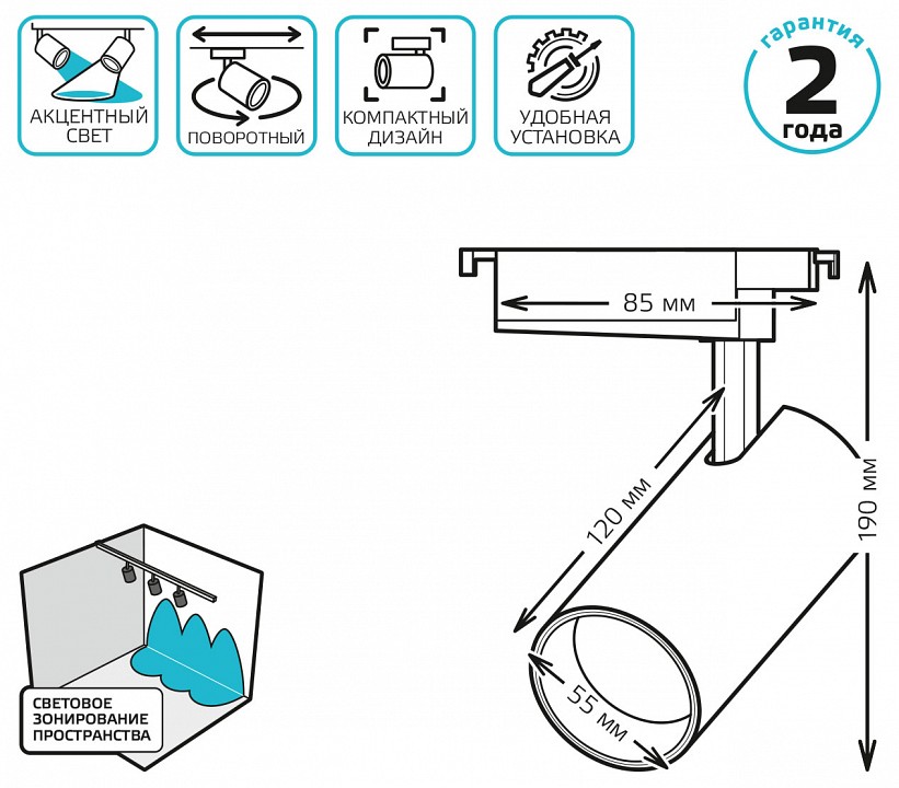 | Дополнительные параметры | поворотный светильник, однофазная система | |
