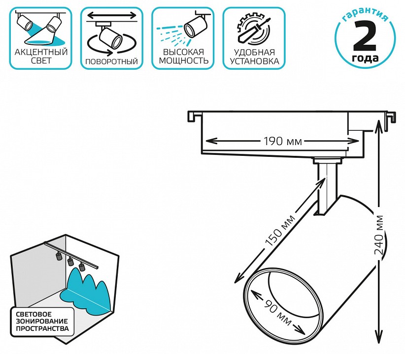 | Дополнительные параметры | поворотный светильник, однофазная система | |
