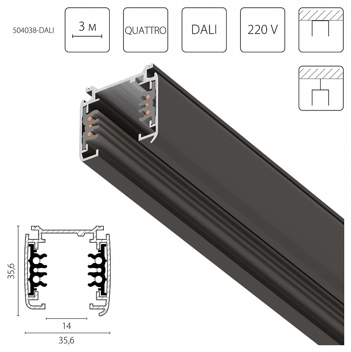 | Дополнительные параметры | Тип шинопровода - четырехконтактный трехфазный Quattro. (трехфазная система) | |