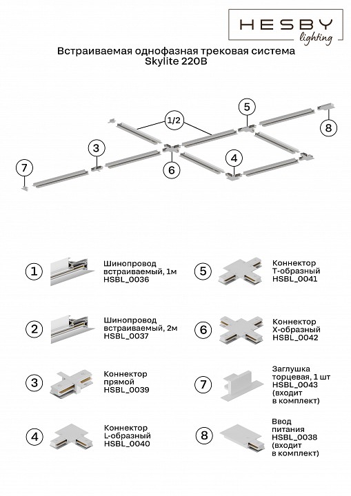 | Компоненты, входящие в комплект | трек встраиваемый HSBL_0036 - 1 шт.,ввод питания HSBL_0038 - 1 шт., заглушка HSBL_0043 - 1 шт. | |